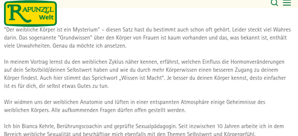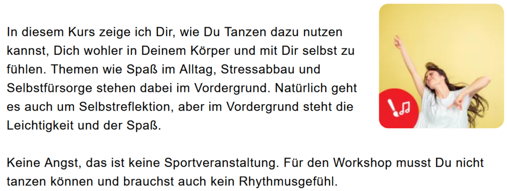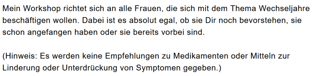 Ich freue mich über jede einzelne Teilnehmerin an meinen Veranstaltungen.
